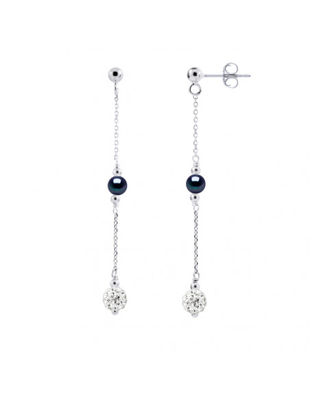 Boucles d'Oreilles en Argent 925 Millièmes Rhodié & Véritables Perles de Culture d'Eau Douce Rondes 5-6 mm traversantes