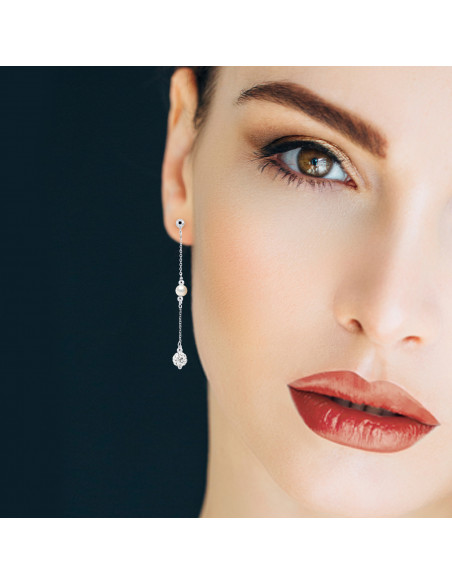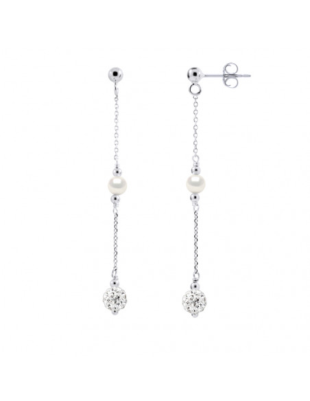 Boucles d'Oreilles en Argent 925 Millièmes Rhodié & Véritables Perles de Culture d'Eau Douce Rondes 5-6 mm traversantes