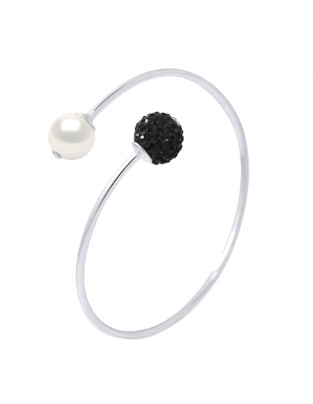- COLORIS BLANC NATUREL et d'une BOULE CRISTAL NOIR-10 mm