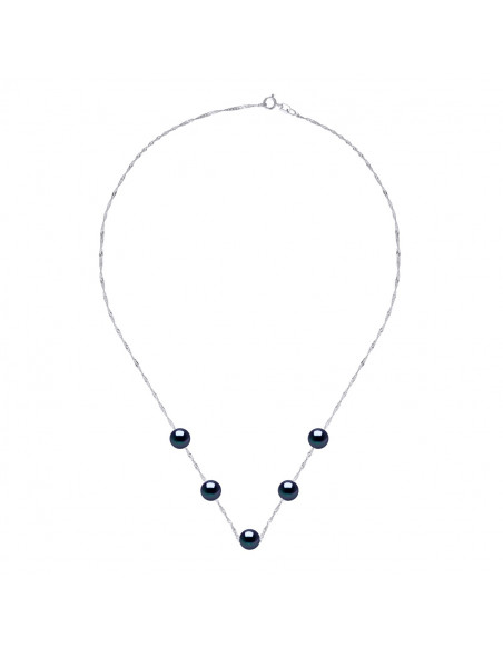 Collier 5 Véritables Perles de Culture d'Eau Douce Traversantes Rondes 9-10 mm