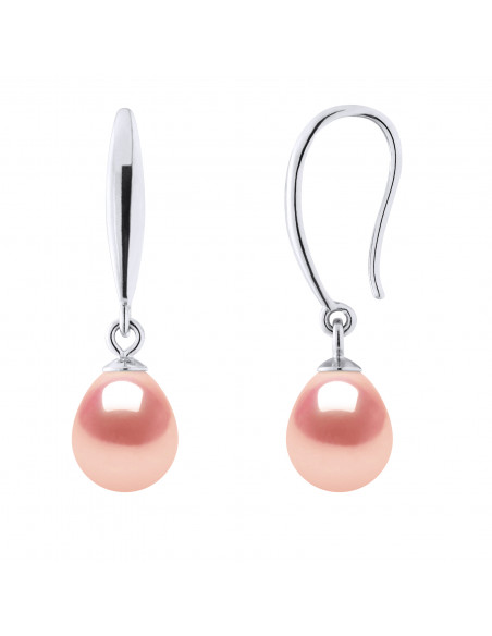Boucles d'Oreilles Pendantes Véritables Perles de Culture d'Eau Douce Poires 8-9 mm