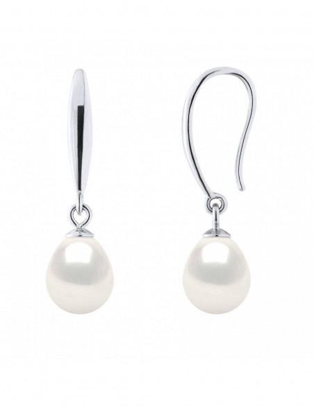 Boucles d'Oreilles Pendantes Véritables Perles de Culture d'Eau Douce Poires 8-9 mm