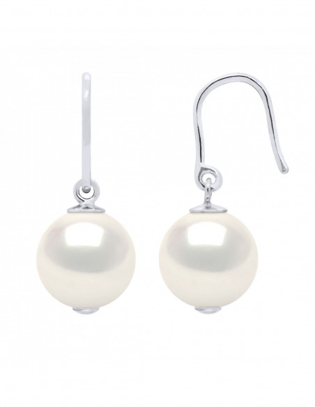 - Argent 925 Millièmes Rhodié ornées de Véritables Perles de Culture d'Eau Douce Rondes 9-10 mm