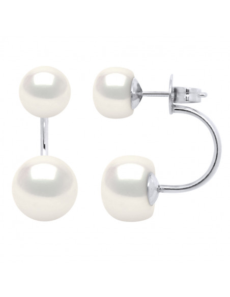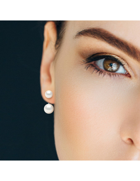Boucles d'Oreilles DUO Véritables Perles de Culture d'Eau Douce Boutons 7 et 9 mm