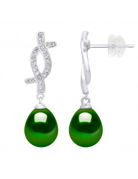 Boucles d'Oreilles Pendantes Véritables Perles de Culture d'Eau Douce Poires 8-9 mm