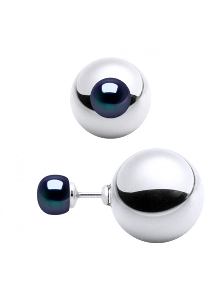 Boucles d'Oreilles RECTO VERSO Véritables Perles de Culture d'Eau Douce 6 mm