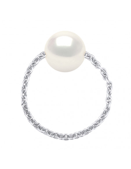 Bague Chaine Véritable Perle de Culture d'Eau Douce Ronde 7-8 mm