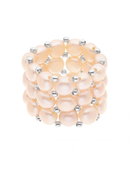 Bague 3 rangs en véritables Perles d'Eau Douce