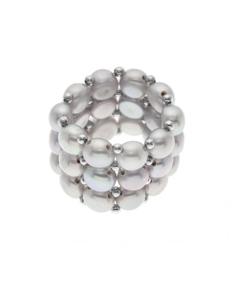 Bague 3 rangs en véritables Perles d'Eau Douce